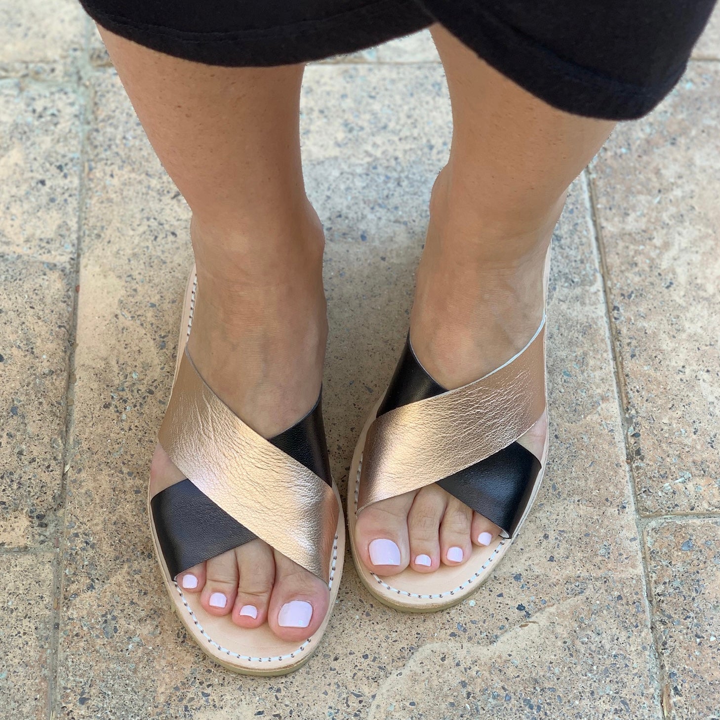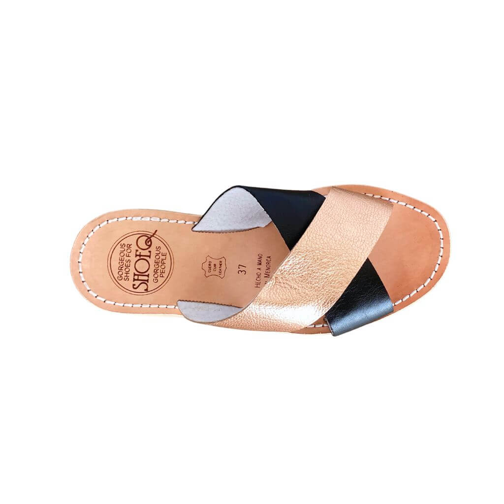 - Handcrafted all leather sandal with two contrasting straps