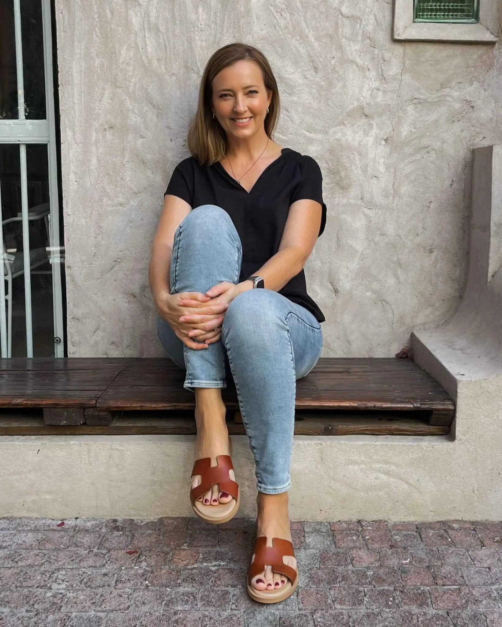 Handcrafted from premium leather in a rich chocolate brown, Hania Luxe features an easy slip-on design with open toe and back, plus flexible rubber soles. Perfect for casual weekends, smart casual styling, and everyday wear. The chocolate brown adds sophisticated depth to neutrals, earth tones, or vibrant colors.