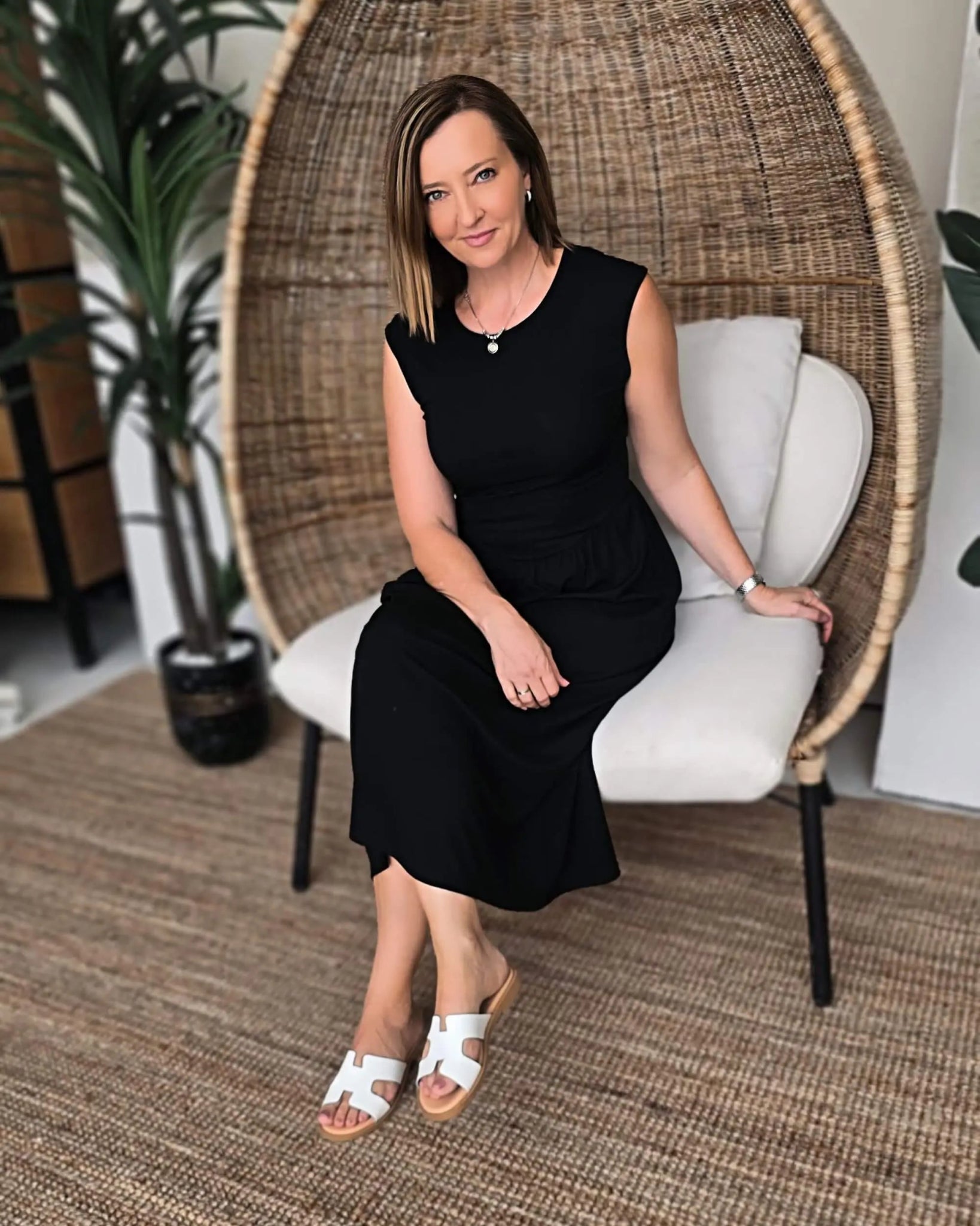 The fresh white leather pairs beautifully with everything from beachwear to casual outfits.