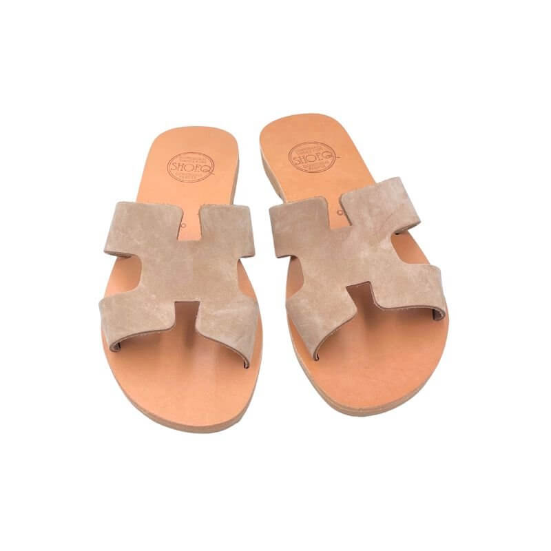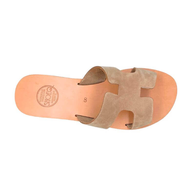 Hania Slide in Toffee is crafted from soft Nubuck leather