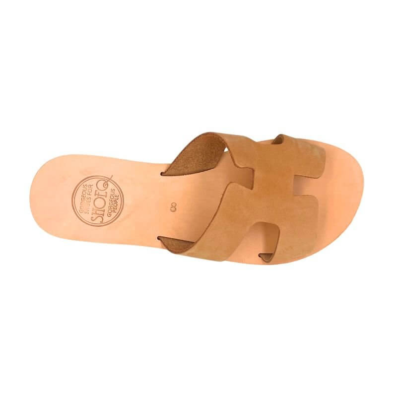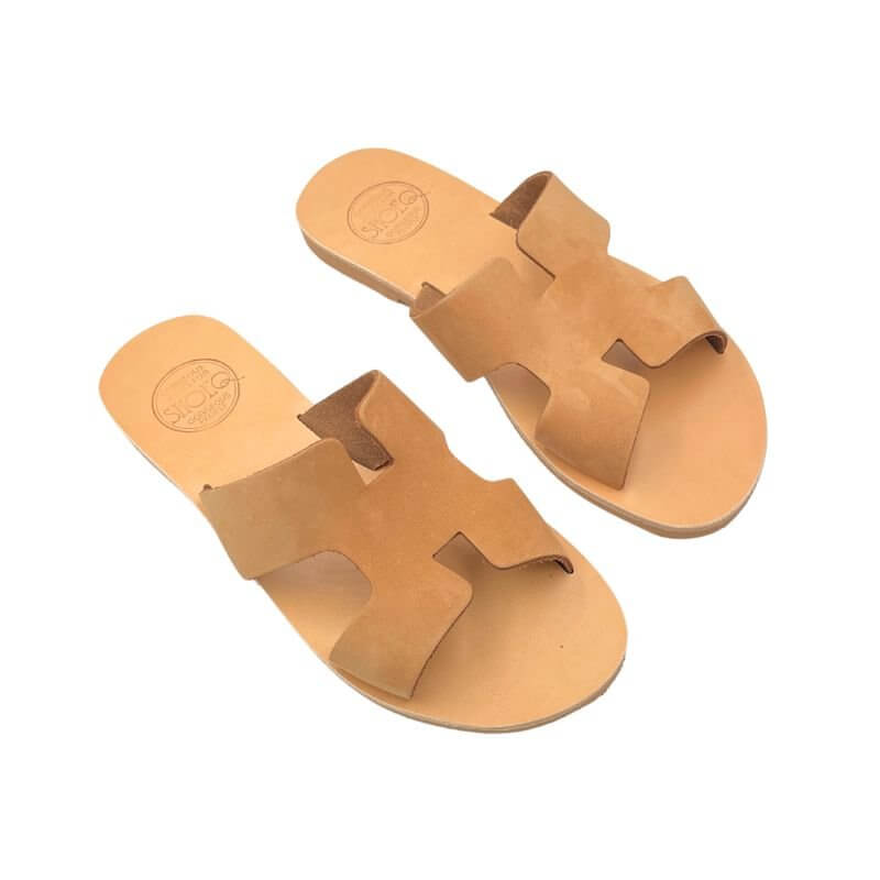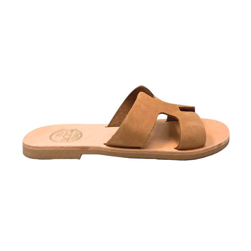 Hania Slide in Toffee is crafted from soft Nubuck leather
